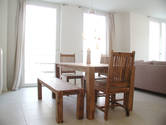 - Wohn-/Essraum mit Gas-Kaminofen (Nutzungsgebühr), offene Küche. Doppelzimmer. Doppelzimmer mit Kojenbett. Bad: Dusche, Badewanne, Waschbecken, WC. Gäste WC. Kleiner Südbalkon, große Dachterrasse nach Osten.